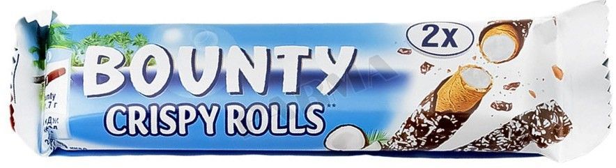 Bounty Crispy Rolls are an innovative new way to enjoy the coconutty goodness of Bounty. Inside each pack, you'll find two crispy, crunchy wafer rolls filled with a creamy coconut filling, coated in smooth milk chocolate, and decorated with desiccated coconut.