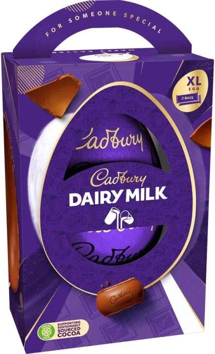 Send this luxuriously delicious Cadbury Dairy Milk large Easter egg with two Cadbury Dairy Milk bars