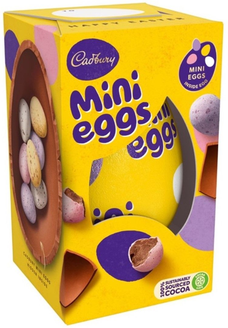 One milk chocolate hollow egg with milk chocolate Cadbury Mini Eggs inside the egg.