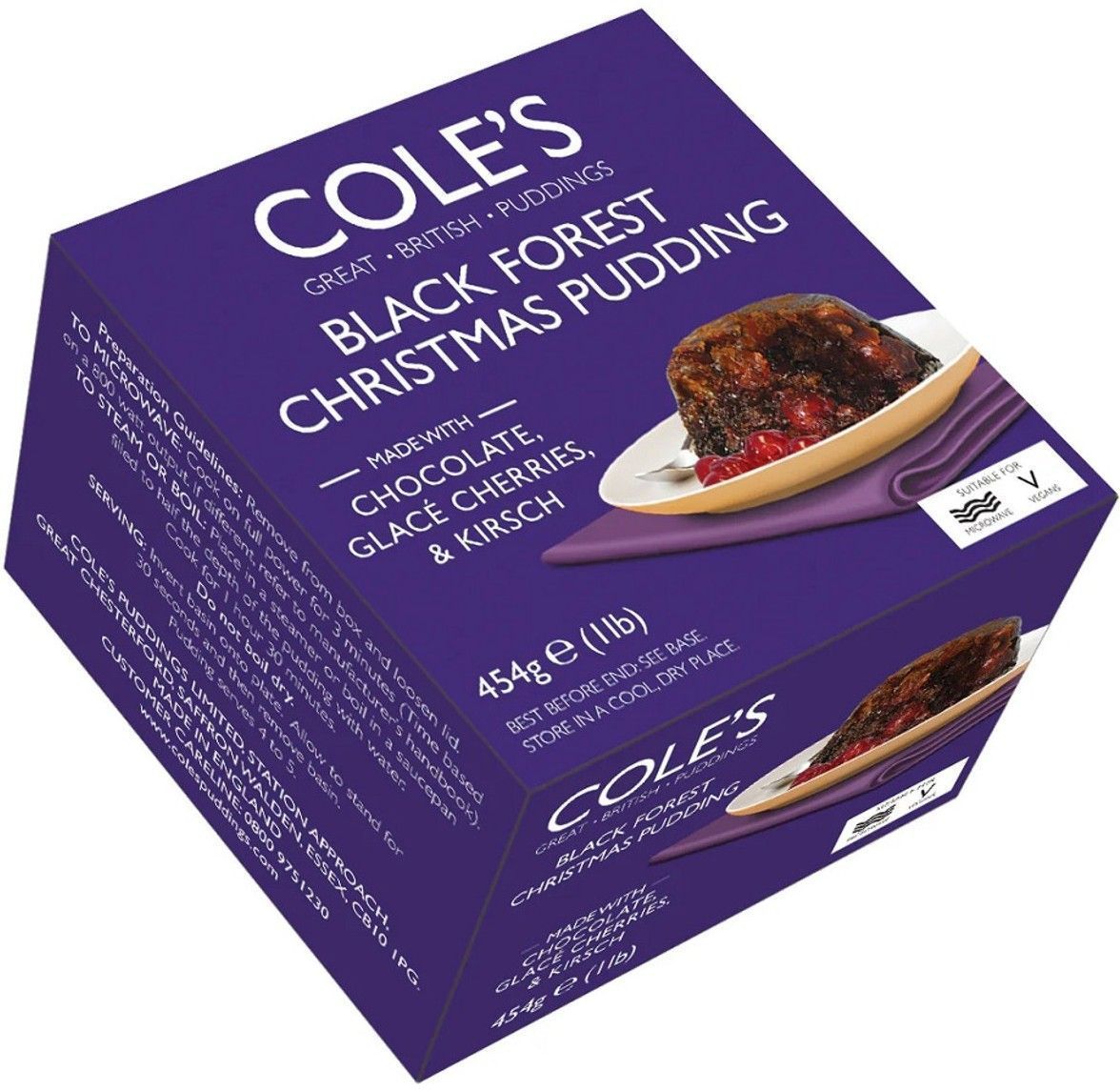 A rich fruited pudding containing chocolate, black cherries, and flavoured with Kirsch.