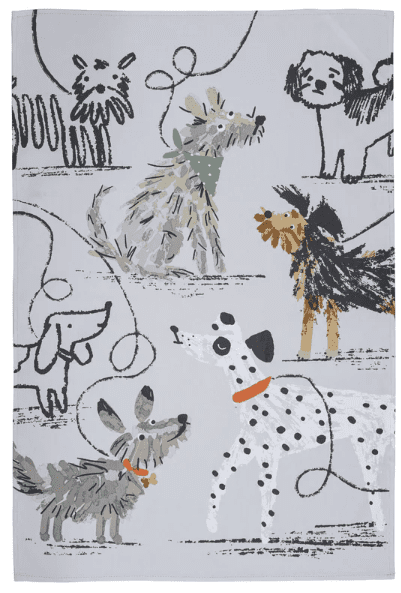 This ragtag rabble of playful pooches has heaps of personality! The style of illustration has drawn inspiration from the iconic sketches of Quentin Blake with the use of scratchy black crayons and rough gouache brushstrokes. The excitement and energy of these pups radiates out from the design and the tangled leads spiralling throughout are an amusing backdrop. The dogs may be scruffy, but the collection is absolutely paw-some.