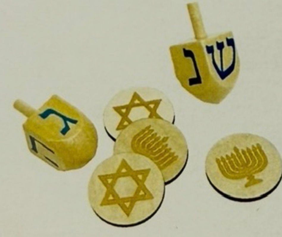 Dreidel, Dreidel, Dreidel Mini Hanukkah Crackers each containing three items: one tissue paper crown, one joke, and a surprise trinket. 7 Inch
