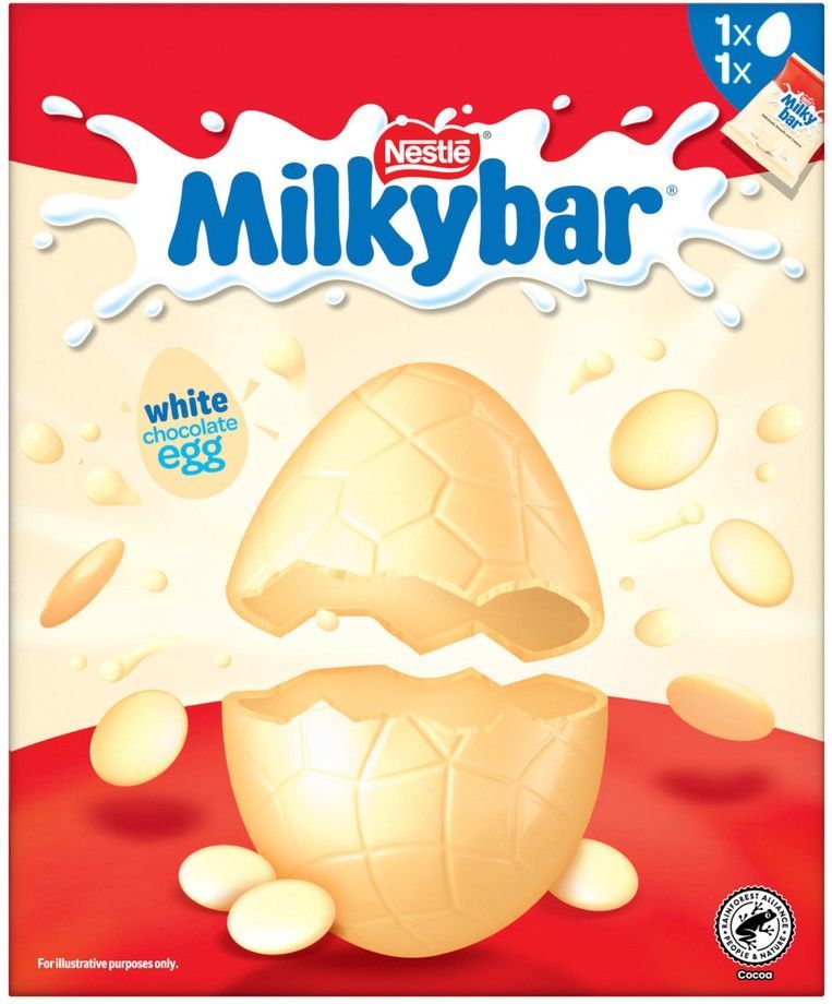 Classic MilkyBar white chocolate egg and one pack of MilkyBar buttons