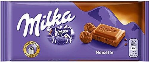 Milka Noisette Chocolate Bar is made with alpine milk chocolate and hazelnut cream for an unforgettable treat!