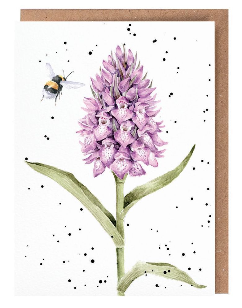 Featuring a bee and Marsh orchid this card is perfect for any occasion. The image is printed on high quality, sustainably sourced textured board and is left blank inside for your own message. Supplied with a recycled kraft envelope and measures 6.77 x 4.84 inches.