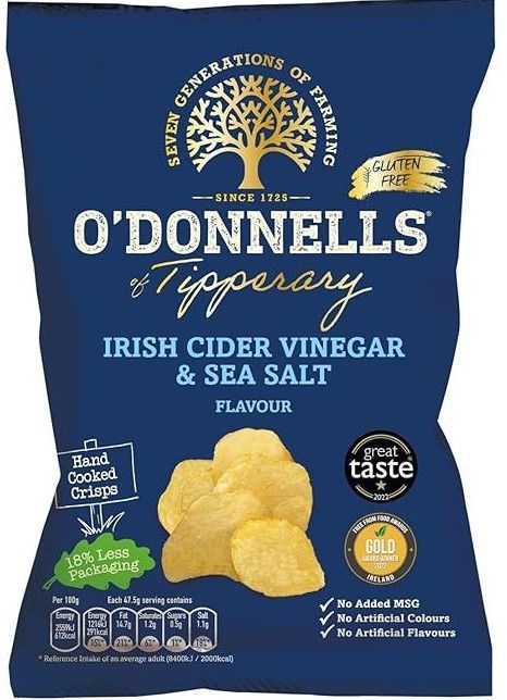 Irish cider vinegar and sea salt flavour hand cooked potato crisps.