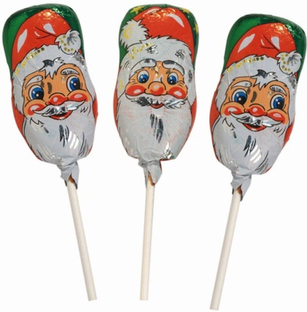 The Storz Milk Chocolate Assorted Santa Lolly Display is a festive, eye-catching treat. - Milk chocolate lollipops in the shape of Santa Claus.
