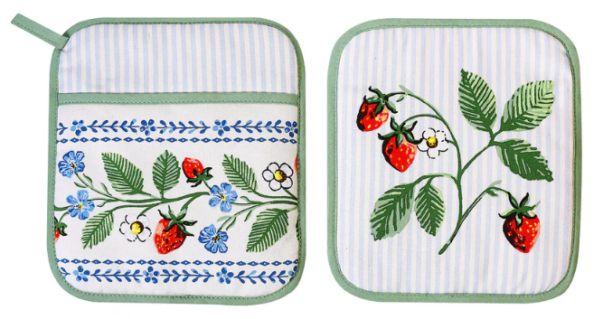 Charming, nostalgic, and refreshingly modern, Strawberry Patch is a timeless kitchen textile range inspired by traditional vintage designs and reimagined for contemporary homes. Featuring hand-painted watercolour strawberries, bees, and forget-me-not flowers on a soft cream background, this collection celebrates the beauty of classic cottage style. Vintage-inspired blue stripes and a ceramic-style blue floral trim add a fresh dimension, creating a look that's both familiar and new. Designed as a mix-and-match range, Strawberry Patch layers delicate patterns with nostalgic details, inviting creativity and personal style into the kitchen. This is truly an heirloom range. Soft, pretty, and full of charm, this collection brings the warmth of a traditional cottage kitchen into the modern day.