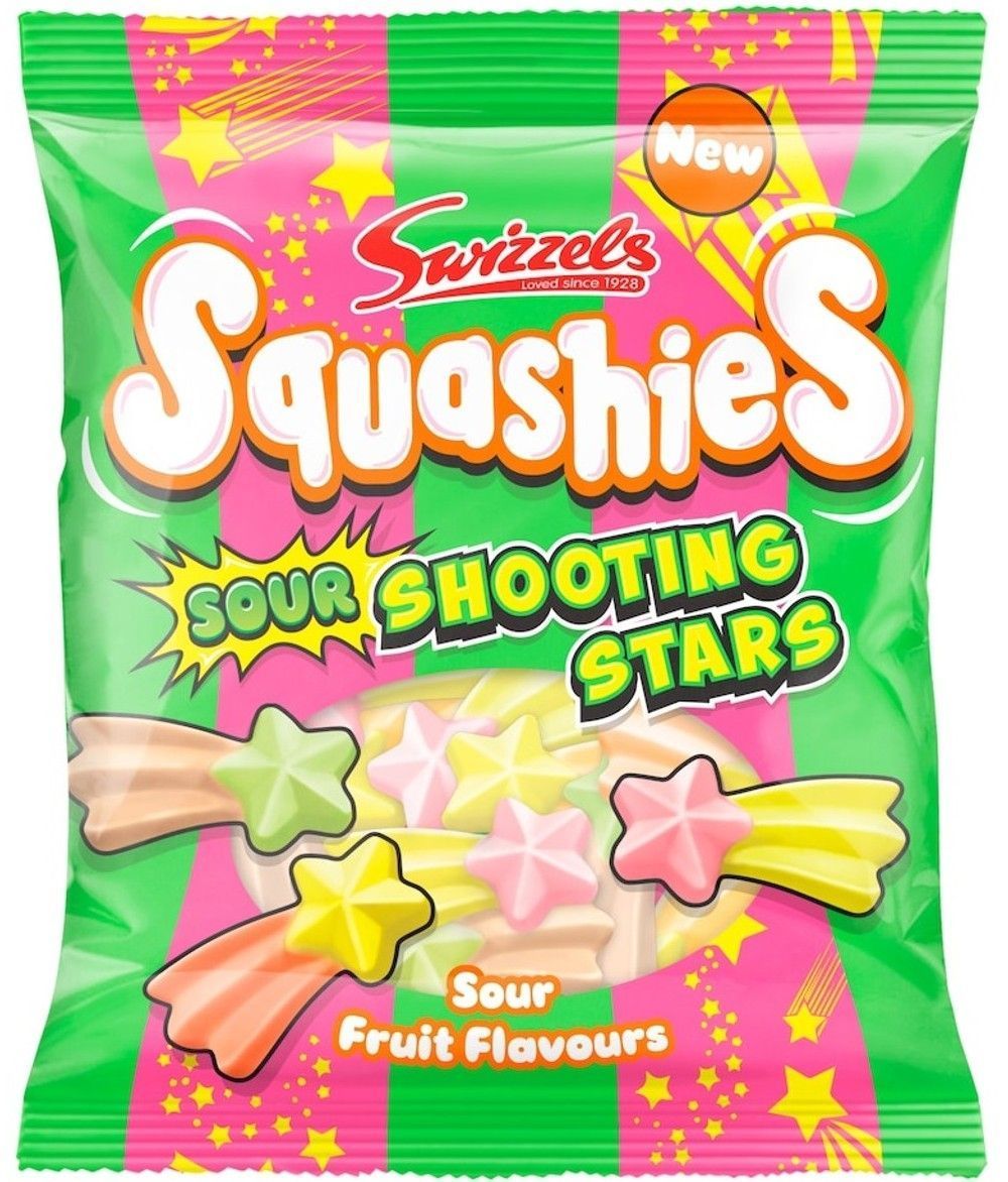 Squashies were invented in 2012 by taking some of your favourite Swizzels flavours and creating uniquely soft and foamy, deliciously moreish sweets and Swizzels Squashies Sour Shooting Stars are the latest addition to this fun sweet range. Shooting star-shaped soft gummy sweets bursting (literally) with sour fruit flavoured. Packed into a shareable bag, they're the perfect fun sweet treat. If happy was a sweet, it would be Squashies!