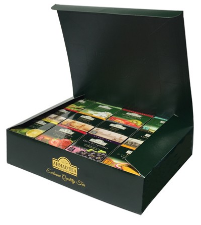 This exclusive quality tea master includes 12 x 10 foil teabag selections; Lemon & Lime Twist, English No. 1, Strawberry Sensation, Jasmine Green, Ceylon, Strawberry & Kiwi, Pure Green, Early Grey, Peach & Passion Fruit, Mint Green, English Breakfast, and Blackcurrant Burst.