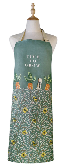 Celebrate the joy of growing your own with Time to Grow, a beautifully illustrated kitchen textile range inspired by a love of gardening, seed packet art, and the simple pleasures of home-grown produce. Hand-painted in delicate watercolours, the design features vintage gardening tools, seed packets, and vegetables, all set against a natural, earthy background that reflects the wholesome spirit of the allotment and kitchen garden. Fun items include the apron, where carrots peek cheerfully from the pocket in a design layered with floral and foliage motifs inspired by classic Arts and Crafts patterns. Playful details, like the on-trend cabbage cosy and quirky carrot gauntlet, all add a sense of fun and make the range a delightful talking point in any kitchen. With its blend of traditional inspiration and original artwork, Time to Grow creates heirloom-quality pieces that feel timeless yet fresh, perfect for garden lovers, makers, and home chefs alike.