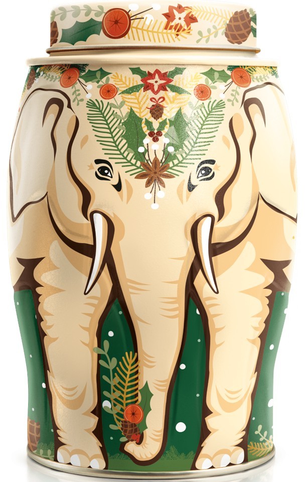 A beautiful winter garland to decorate any festive kitchen. Our new Winter Garland elephant caddy is decorated with classic Christmas colours, pine cones, mistletoe, and holly. Contains our seasonal Christmas Blend, a sweet and fragrant tea that warms the body in the depths of winter, combining black tea from our Kapchorua farm with the aromas of apple and spice.